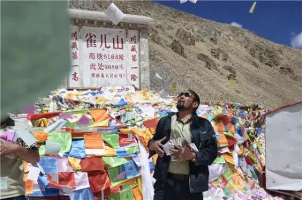 其美多吉在雀儿山垭口抛撒龙达