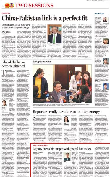 在记者的帮助下,柴闪闪认真阅读了《china daily》关于他的报道,“honor and responsibility”,他说,这两个词语用得非常贴切,作为一名人大代表,确实得到了崇高的荣誉,但同时,肩上也担负着沉甸甸的责任。