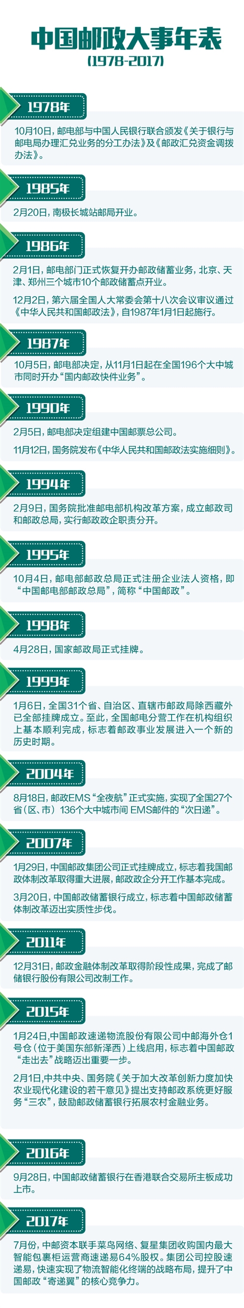 自1896年至今,中国邮政事业已走过120多年的风雨历程。在这漫漫征途中,中国邮政集团公司始终紧扣新发展理念,通过改革创新实现转型升级,并发展成为凯发娱乐的业务范围覆盖传统邮政、金融、包裹快递、电子商务等领域的现代化企业集团。