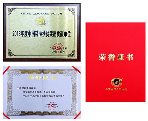 中国邮政集团公司荣获“2018年度中国精准扶贫突出贡献单位”