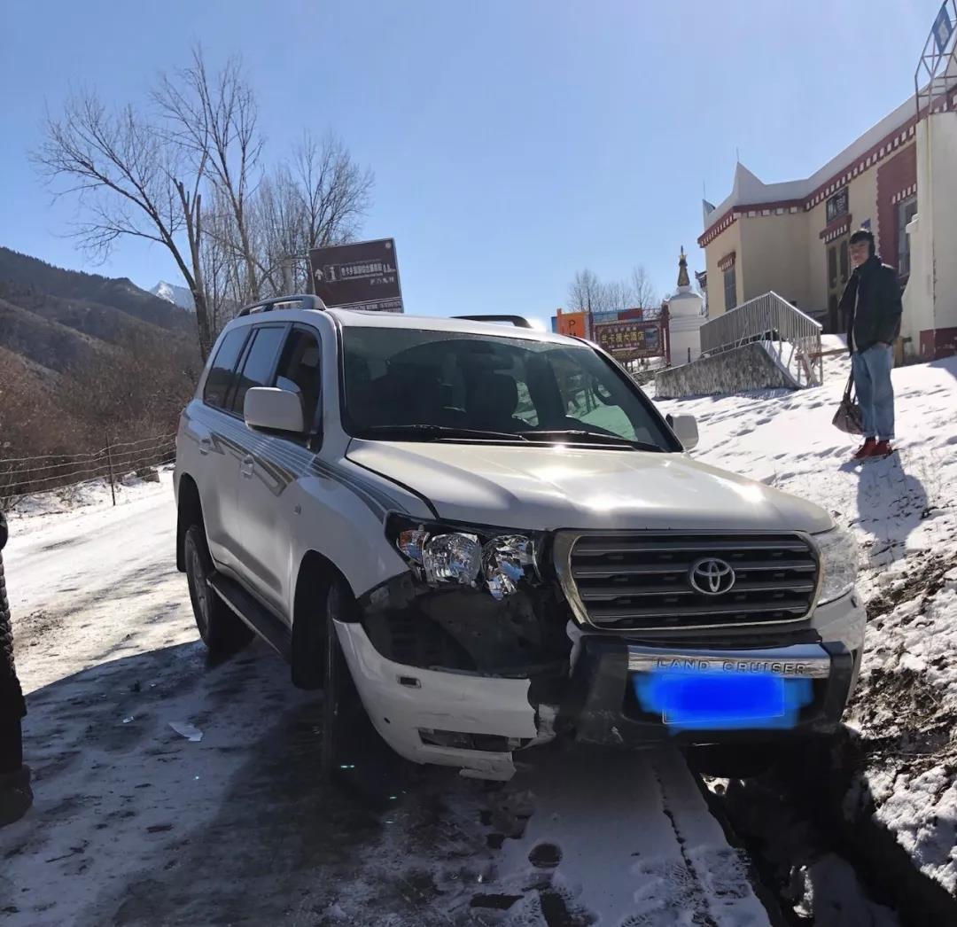 无奈之下我们改为第二天早上出发,结果出发不久我们就体验了传说中的蜀道之难。从康定市到甘孜县全程300多公里,开车却需要8个小时,到处都是盘山路和冰面路段,中午11点53分,我乘坐的车辆突然打滑,追尾前面的轿车,一个轮胎冲进了路边的排水渠。