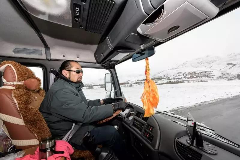 其美多吉已经工作30年了,每次运送邮件都是天不亮就出发,迎着朝阳在路上飞驰。给我印象最深的就是邮车里空间很小,勉强可以挤下3个人,而且每次过减速带的时候,整个人都会被颠簸得飞起来。路上我问其美多吉,你们这个邮车驾驶室空间这样狭窄,休息都很费劲,不难受吗?他却说这辆车是新的,条件不知道比以前好多少倍。以前的车里连空调都没有,一开起来灰尘也很大,这辆新车有空调,有一个小小的卧铺,还有gps定位,他非常满意。