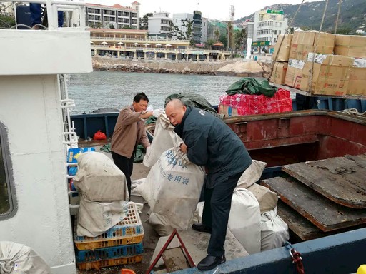 春节前夕,谢坚每天都忙碌着将刚刚到港的包裹搬运下船。
