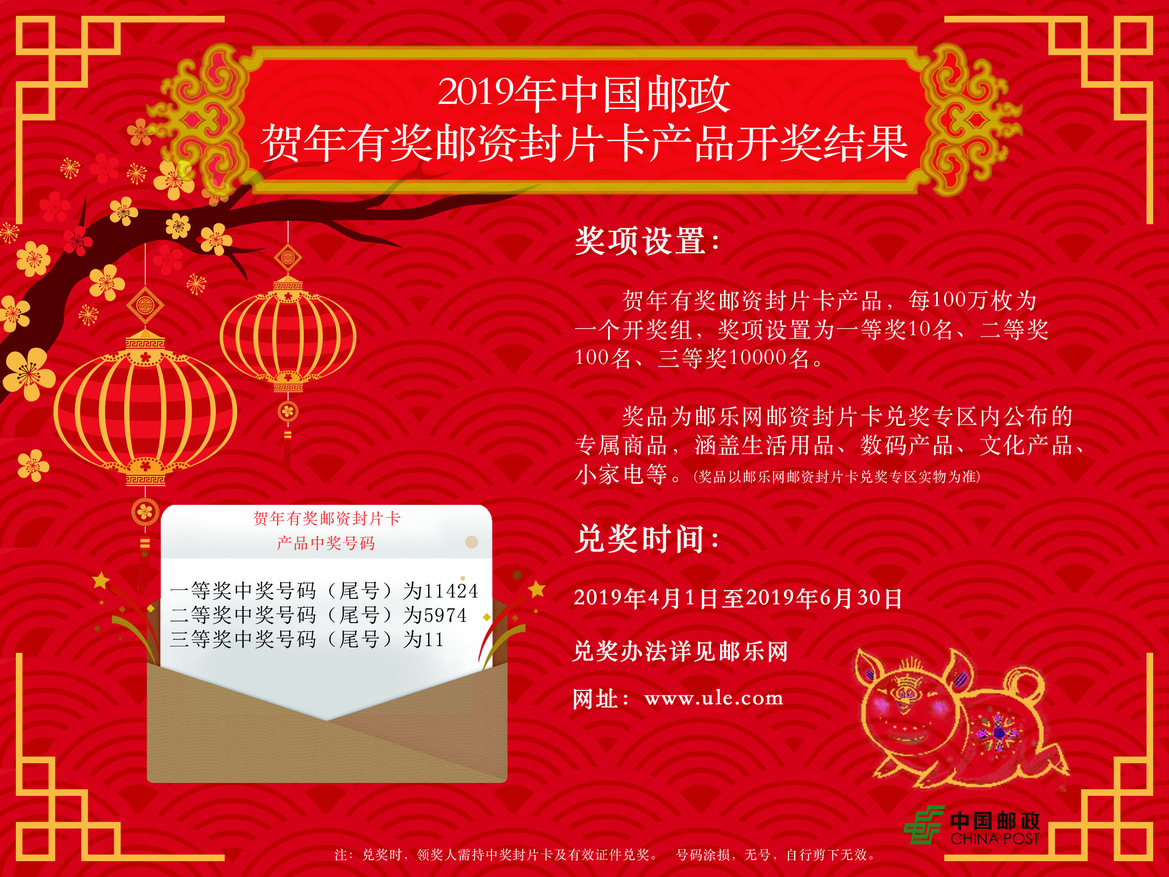 2019年中国邮政贺年有奖邮资封片卡产品开奖结果