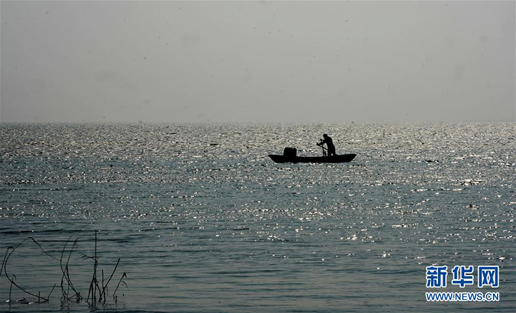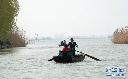 3月30日,唐真亚在洪泽湖上划行。新华社记者 黄晓勇 摄