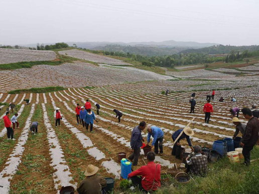 2017年,中国邮政在当地试种朝天椒,在陶岭社区成立朝天椒种植合作社,采取“村集体经济提留 农户土地入股分红 贫困户分红”的经营模式,一方面合作社以每亩500元的价格从村民手中流转土地,让土地得以集中规模化种植,另一方面农民通过在地里干活赚取工资并取得利润分红,这样一来,村民热情渐渐高涨起来。据中国邮政扶贫干部、陶岭社区第一书记郝军介绍,2018年,人均耕地只有1.6亩的陶岭社区种植朝天椒达到了317亩。