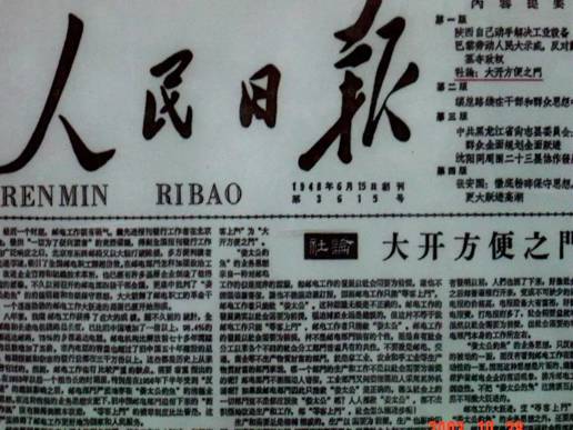 1958年6月2日《人民日报》在头版发表社论《大开方便之门》
