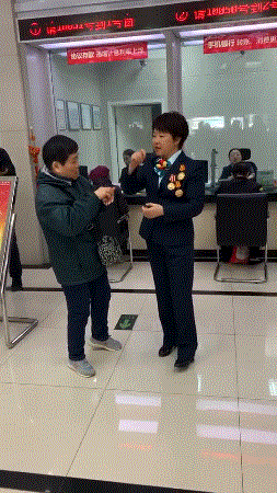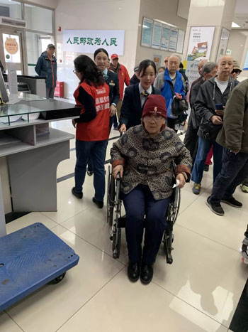 主动帮助行动不方便老人办理业务的东四邮局员工