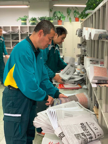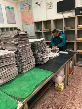 东四邮局北新桥投递部已经分好的报纸(央广记者 冯会玲摄)