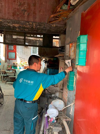 在胡同里送报纸和包裹的小梅(央广记者 冯会玲摄)