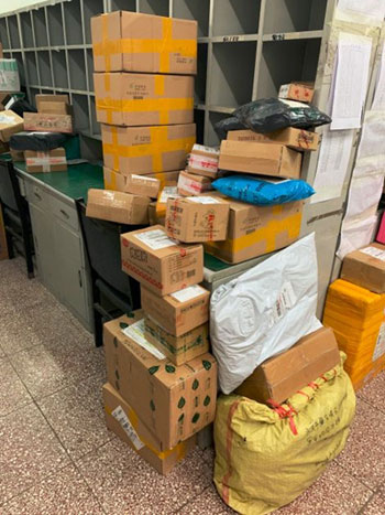 小梅每天上午送1100份报纸,下午送88份晚报,包裹每天数量不一,我跟着她的这天,上、下午加起来83个。小梅说,最高峰的时候可经常是100多个。