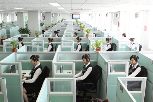 在每名座席员的工位上都放着一个大大的水杯,有的工位上放着两个甚至三个,赵雪娇说,这是为了节省打水的时间。长时间在一线的座席员,由于每天不停地说话,很多人都患上了不同程度的咽炎,除了紧张的午饭时间之外,他们大部分时间都是坐在工位上接听来自全国各地的、遇到各种问题的客户电话。赵雪娇笑着说:“我现在能听懂好多地方的方言呢。”