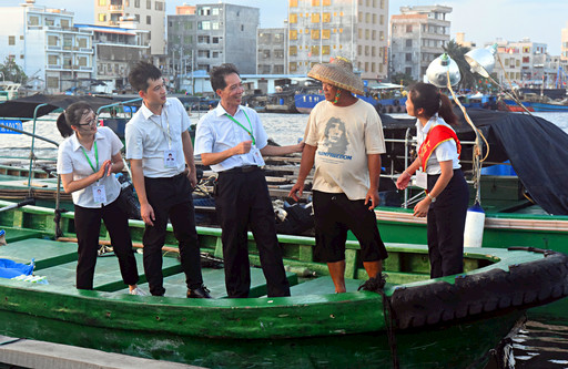 蔡德余和他的团队成员向渔民了解贷款需求。