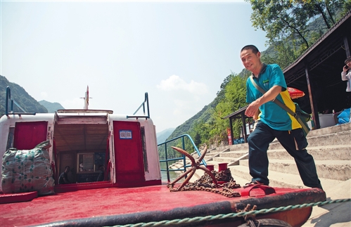 8月,湖北省谷城县南河风景区,两岸青山隔水相望,游船划过碧绿的水面,景点、民宿、农家博物馆点缀岸边……面对美景,谷城县邮政分公司盛康支局投递员宋先凯却无暇欣赏。不到8点,他像往常一样把要投递的包裹、报刊带到码头,再倒换到游船上,溯流而上,沿岸投递。每到一个停靠码头,宋先凯都会下船步行投递,并在开船前赶回。往返最远的一个投递点,需要步行10公里。
