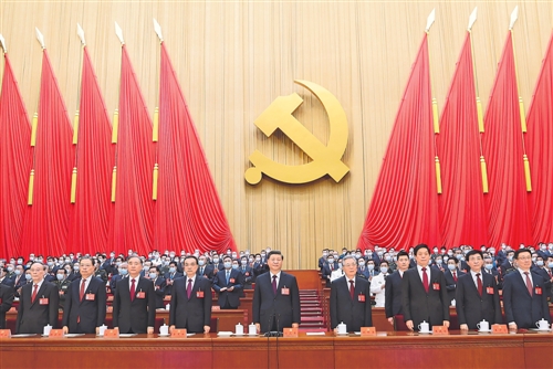 10月22日,中国共产党第二十次全国代表大会在北京人民大会堂胜利闭幕。习近平同志主持大会。□新华社记者 鞠鹏 摄