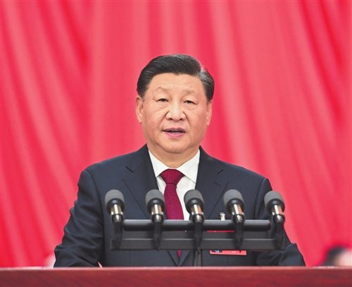 习近平代表第十九届中央委员会向大会作了题为《高举中国特色社会主义伟大旗帜为全面建设社会主义现代化国家而团结奋斗》的报告。习近平指出,中国共产党第二十次全国代表大会,是在全党全国各族人民迈上全面建设社会主义现代化国家新征程、向第二个百年奋斗目标进军的关键时刻召开的一次十分重要的大会。大会的主题是:高举中国特色社会主义伟大旗帜,全面贯彻新时代中国特色社会主义思想,弘扬伟大建党精神,自信自强、守正创新,踔厉奋发、勇毅前行,为全面建设社会主义现代化国家、全面推进中华民族伟大复兴而团结奋斗。