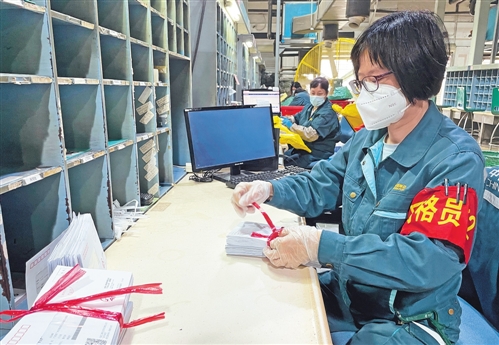 孙伟燕熟练检查处理每件邮件,然后放入相应的格口。