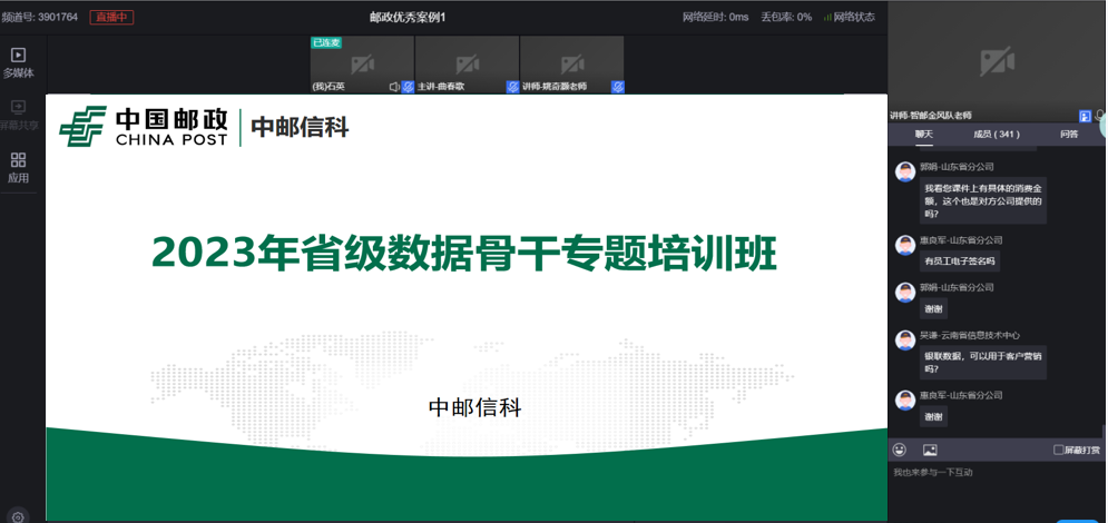 为激发各级大数据分析热情,有效提升大数据技术能力,营造良好的数据化转型工作氛围,中邮信息科技(北京)有限公司数据应用部紧跟大数据技术、人工智能等前沿技术发展趋势,通过中邮网院直播平台组织省级数据骨干专题培训班。