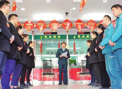 殷勇向员工宣讲全国两会精神。□张成 摄