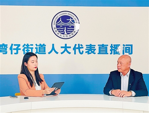 谢坚走进当地人大代表直播间宣讲全国两会精神。□张慧 摄