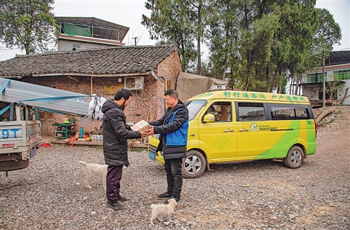 罗建军把村民网购的商品送到家门口。