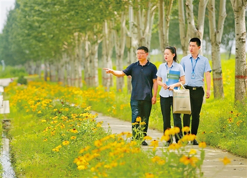 黑龙江省分行客户经理走访农户,了解水稻长势。□赵洋 摄
