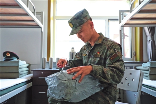 7月25日下午,在位于内蒙古自治区阿尔山市大兴安岭深处的三角山边防连,记者与战士张岳麟一起,从营区门口的邮政驿站取回了令他期待不已的家乡包裹。“是家里寄来的零食和几件厚衣服。”拆包裹时,张岳麟的笑容感染了在场的所有人。