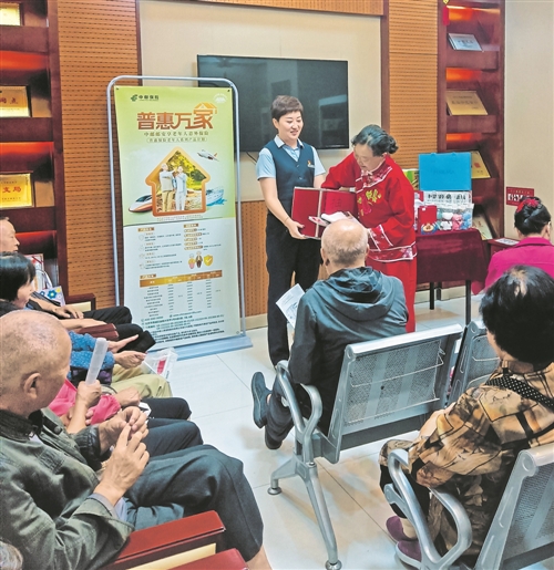 邮政在社区组织“会员日”活动,开展普惠保险场景营销。□崔晓娜 摄