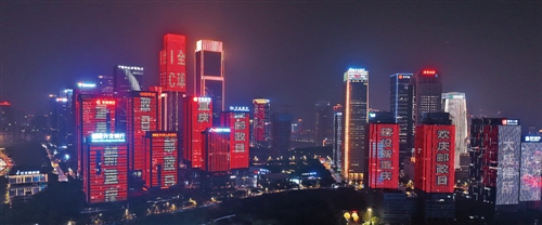 重庆邮政在江北嘴—朝天门夜景区推出世界邮政日主题灯光秀。灯光秀以两江四岸建筑幕墙群(重庆大剧院、江北嘴建筑群、南滨路皇冠国际)为“画布”、光影科技为“画笔”,通过夜景灯饰灯光屏循环播出世界邮政日主题的宣传标语和邮政服务场景的视频。