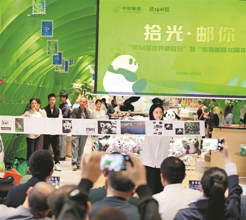 10月9日上午,四川省成都市邮政分公司在熊猫邮局暑袜街旗舰店举行了一场独具匠心的“拾光·邮你”纪念活动,隆重推出了《熊猫时间》纪念邮册和熊猫邮局十周年纪念明信片,并举办大熊猫主题摄影作品展。