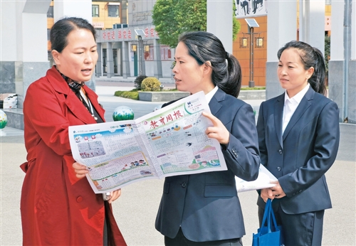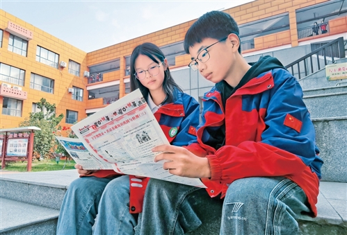 沈丘县思源实验学校学生对自己订阅的教育类报纸爱不释手。