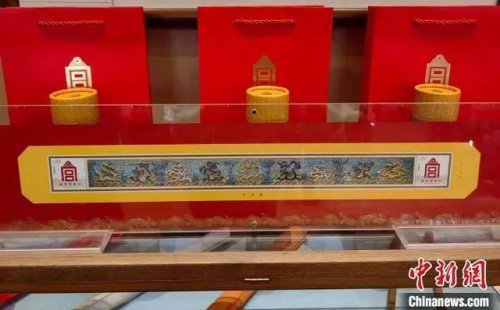 《甲辰太和》故宫生肖贺岁邮票选取了10件故宫博物院藏、具有代表性的“龙”形象文物,包括织绣、雕刻、陶瓷、玉器等大类,充分体现了自古以来中华民族的优秀技艺与卓然审美。邮票尺寸为255*380毫米,设计新颖独特,超大尺寸的设计效果便于观赏展示,极具收藏价值。
