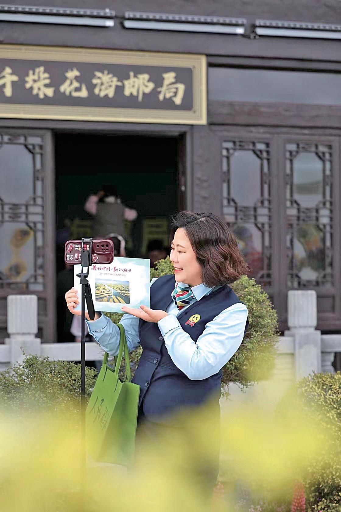千垛花海邮局通过直播展示景区风光和传播邮政文化。