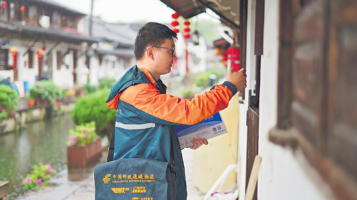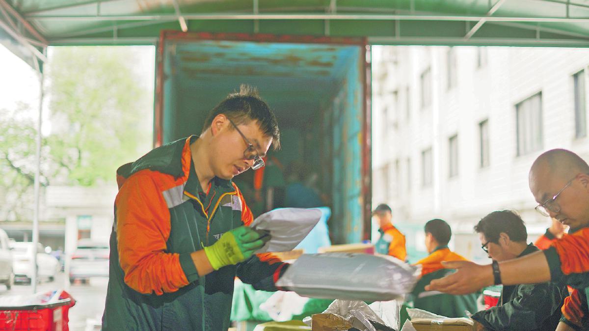 揽收邮件时,阮海良常与“邮掌柜”交流业务。
