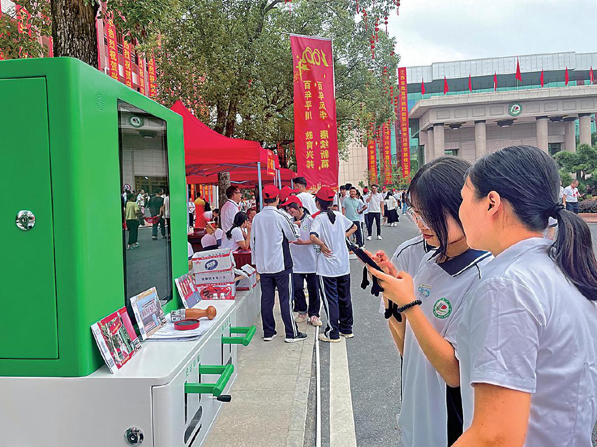 兴国县分公司在平川中学百年校庆活动现场设置明信片打印机,吸引同学们参与。 □李艳 摄