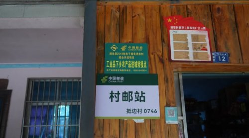 采访组跟着李永梅穿过广场,一起走向阿里上寨村民李春花的家。李春花是村里小卖部的老板,也是阿里上寨的邮件转接员,在她家小卖部门口,挂有一块中国邮政“村邮站”的标识牌,写着“抵边村0746”,代表这座抵边村的编号。李春花接过李永梅递上的邮件说:“我们村通邮后,村里推荐我和邮政合作,担任邮件转接员。现在邮政把快递直接送到我家里,村民再到我家里取,不用像以前那样跑到几公里外的阿里村委会去了,我每个月也能多一点收入。”