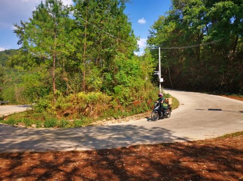 插上钥匙,转动把手,用力一蹬油门,李永梅骑着摩托车载着一箱邮件出发了,采访组也跟着她踏上了前往阿里村的邮路。通往阿里村的邮路并不难走,但因为大山环绕,一路上弯道密集,左摇右晃中,记者很快就感到头晕目眩,但前方的李永梅依旧稳稳地骑在摩托车上。她告诉记者,现在的邮路条件相比过去已经好很多了,但雨季的时候仍免不了被拦腰折断的高大树木挡住去路。“现在我每周进村投递3次,除了党报党刊,一般还会有十多件包裹,都是村民们买的蔬菜种子、食盐等农产品和生活用品。”