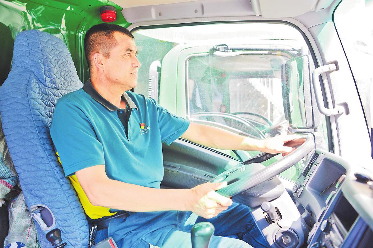 艾尔肯·塞来驾驶邮车出班。
