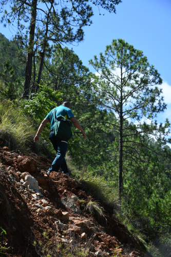刚到木里时,采访组曾跟随何勇和王银海从王顺友故居出发,沉浸式体验了一段王顺友的“马班邮路”,曾经的邮路已被茂密的植被覆盖,但沿着那些深深浅浅的脚印,依然能找到路的踪迹。山路陡峭且泥泞,沿途青冈草的荆棘刺痛皮肤,记者仅走了2公里就气喘吁吁,但远处还有海拔4192米的查尔瓦梁子、水流湍急的雅砻江、悬崖边的“九十九道拐”需要穿越。