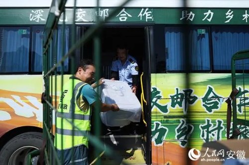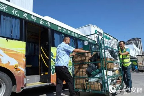 每天上午9时许,位于谯城区的中国邮政亳州邮件处理中心内,不少公交车会陆续开进来。这些车身有着“交邮融合”字样的公交车,就是邮政快递下乡的新“邮车”。