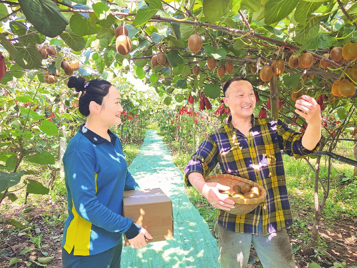 邮政上门收寄猕猴桃,农户乐开怀。□刘力扬 摄