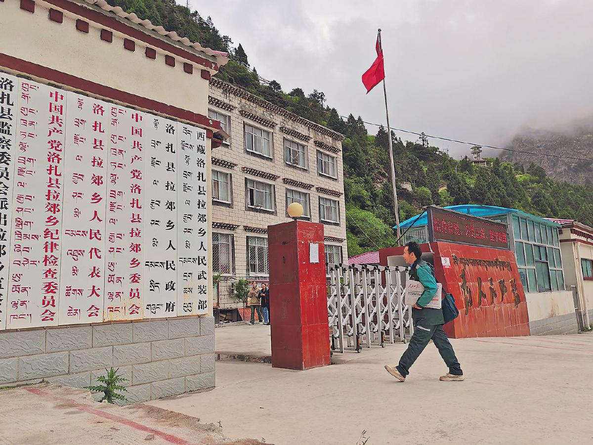 邮政投递员为西藏洛扎县拉郊乡政府送去党报党刊。 □吕文礼 摄