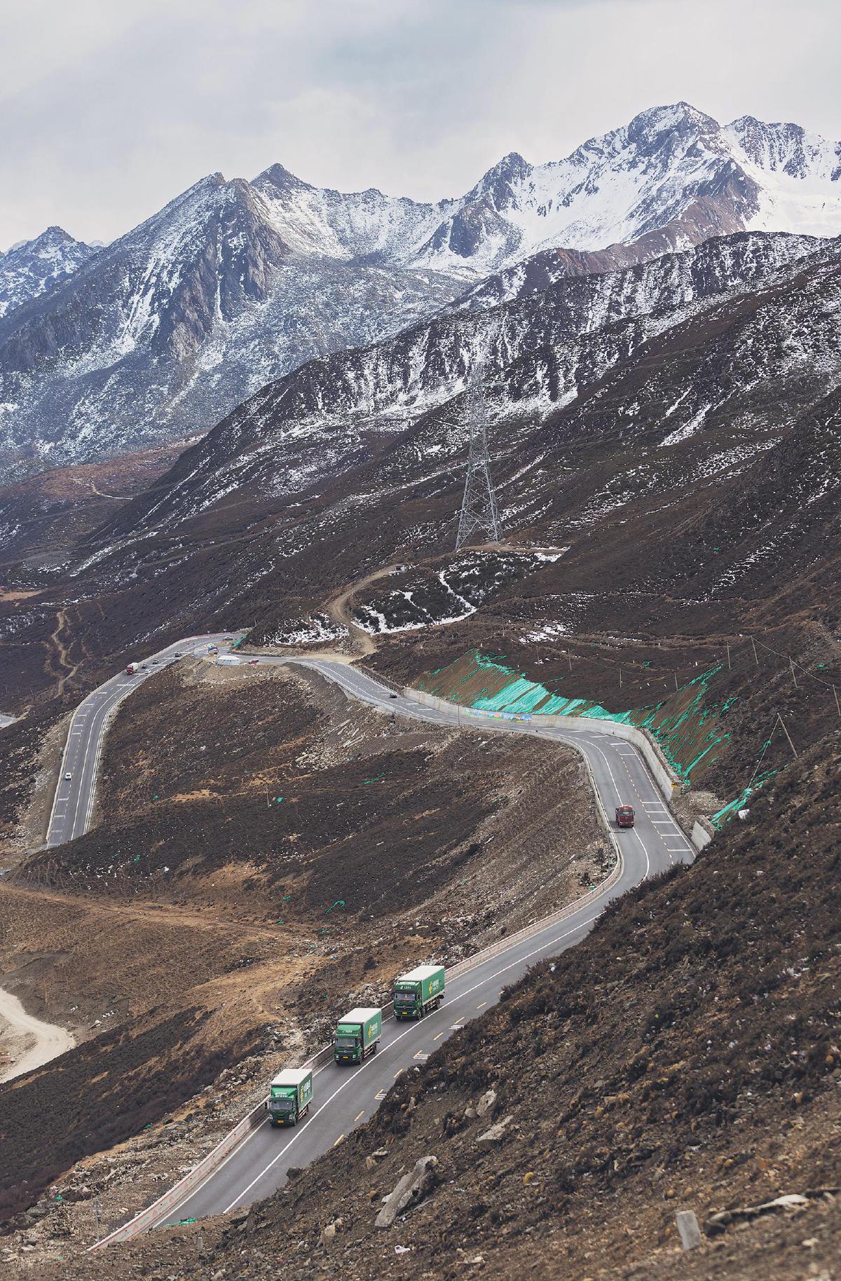邮车翻越“雪线邮路”上的折多山。 □吕文礼 摄