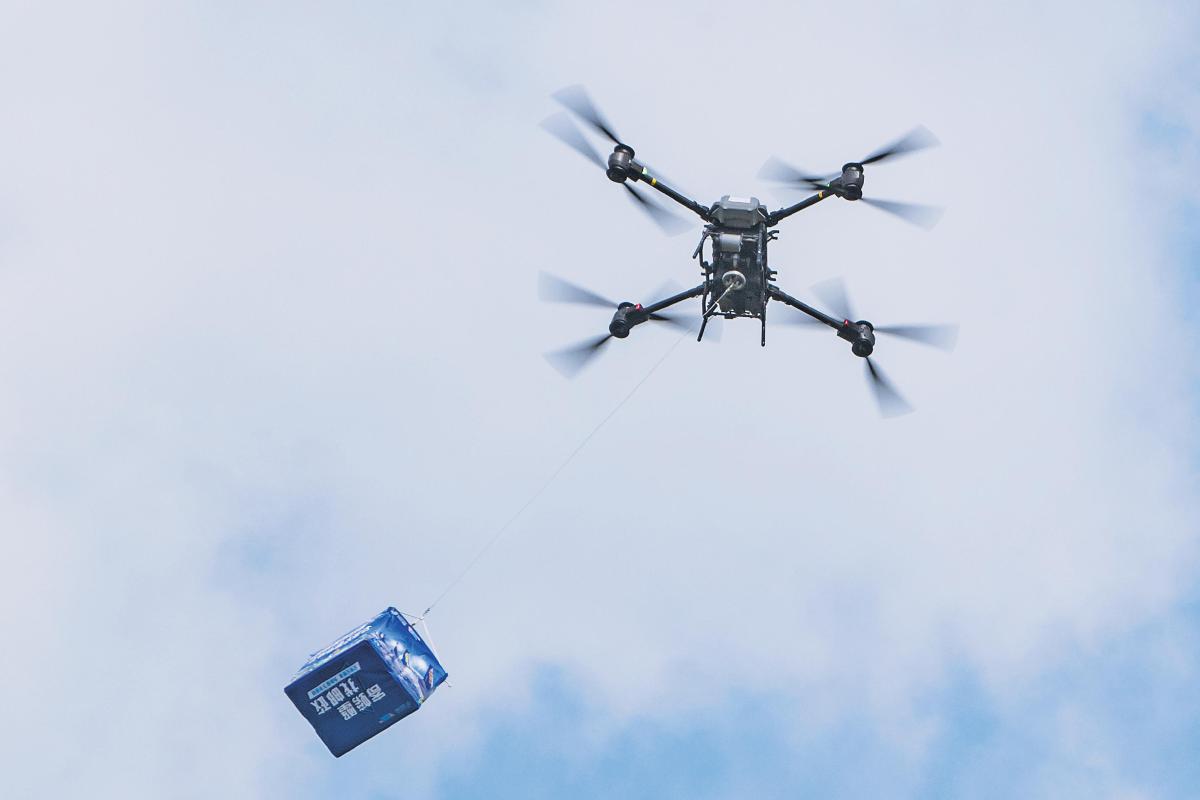 邮政应用无人机运送新鲜捕捞的大闸蟹。□张剑铭 摄