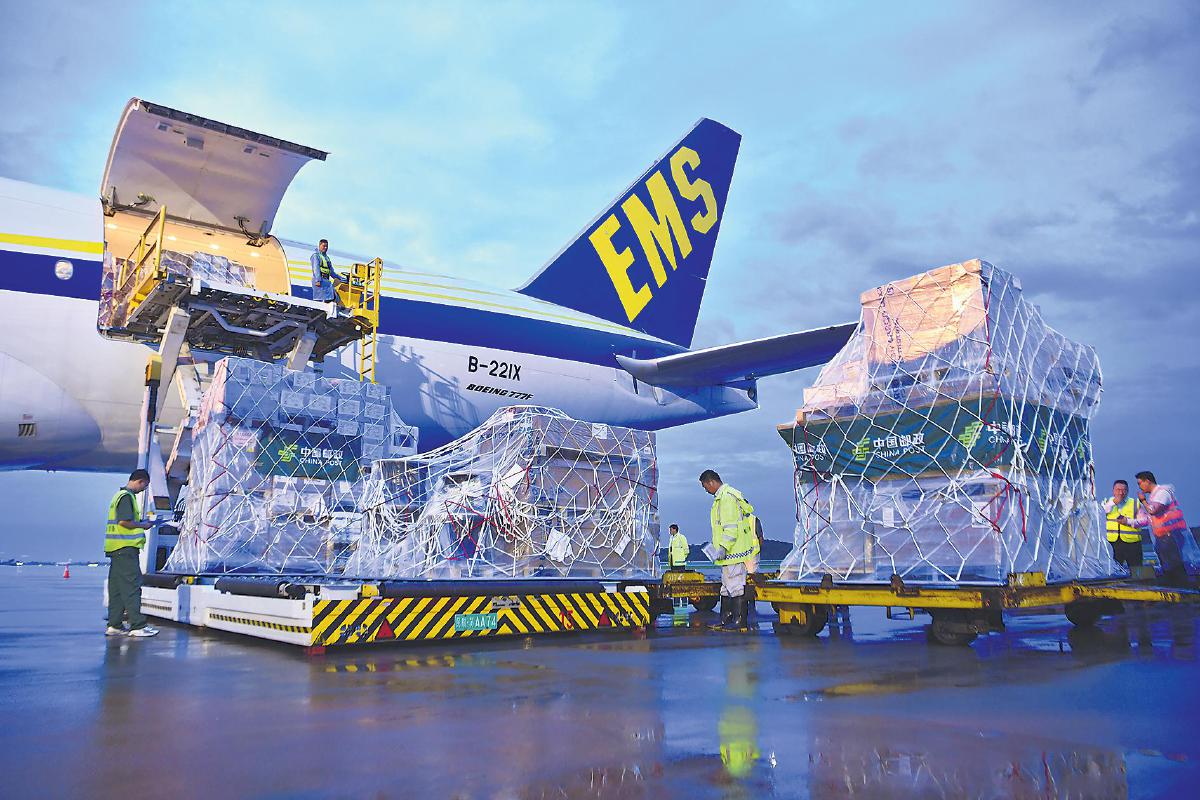 中国邮政引进b777f全货机,成功开通“南京—卢森堡”洲际航线。 □张晨昱 摄