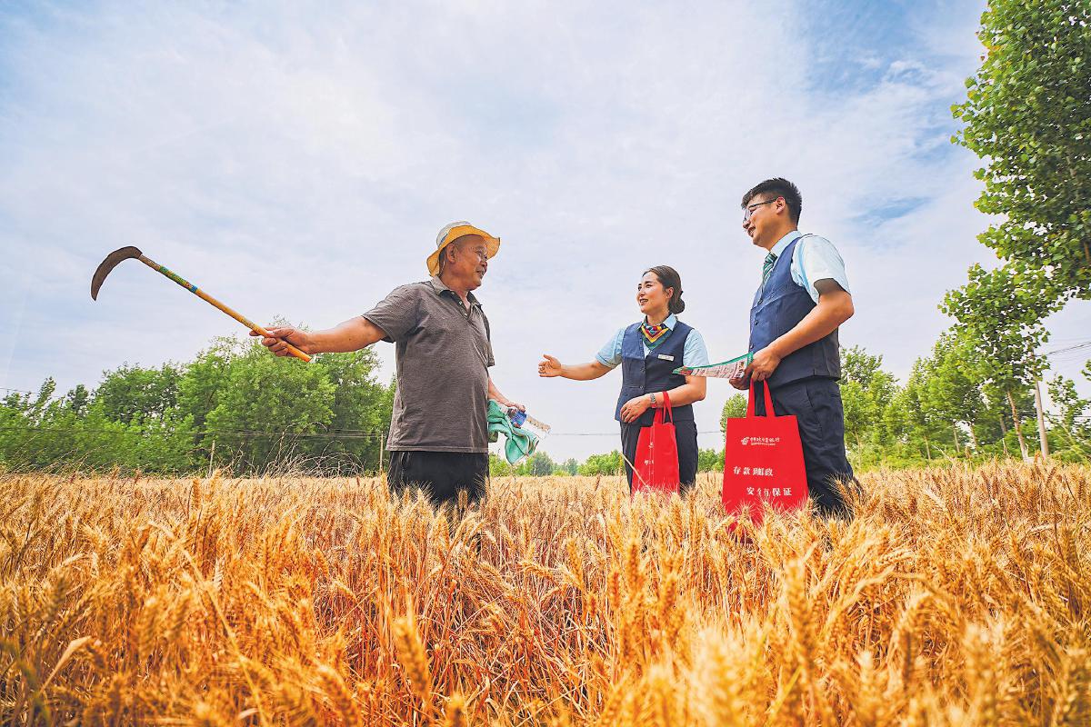 夏收时节,邮政员工深入田间地头,了解农户资金需求。 □李平 摄