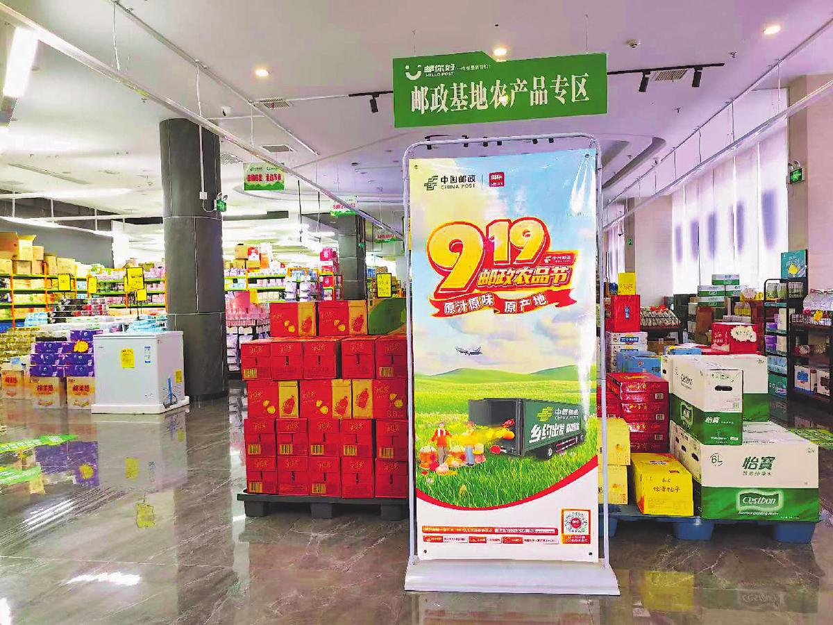 湖北邮政在当地大型商超设置邮政基地农产品专区。□何艳 摄