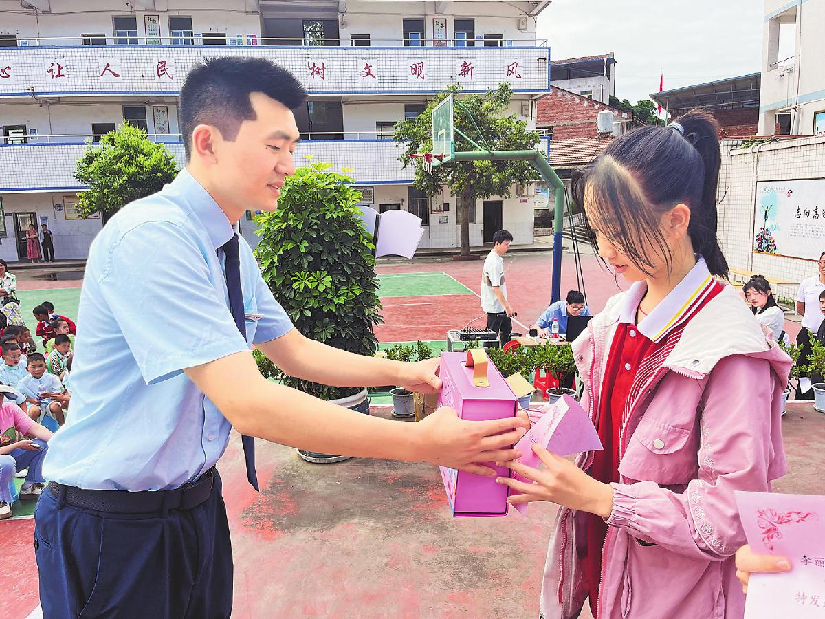 罗为帮助网点与学校建联,为学生捐赠学习用品。