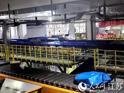 伴随着卸车垛口生产矩阵皮带机的传动声,在南京邮区中心包件进口处理车间,一批批快包正被输往各个垛口,一条条摆轮生产线24小时不间断作业,每小时最高可处理6.11万袋件。