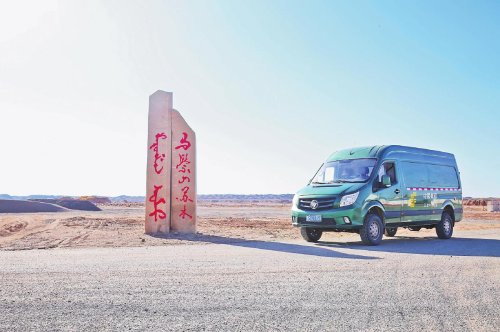 2020年7月,“额济纳旗—黑鹰山”边防邮路正式开通,最远的投递点往返路程有778公里,道路坎坷难行,最怕的是遭遇沙尘暴或冬夏季车辆在无信号地带出现故障。“铺天盖地的黄沙袭来,车都能掉一层漆,我们在与黄沙赛跑。”哈斯毕力格淡定地说,“在无信号区,如果车辆出现故障,根本没有来往车辆,必须跑到有信号的地方或者深入沙漠找寻牧民求助。”